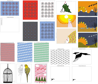 I wanted to see what my own design looked like on postcards. To see how my previous art would change when I put it on to mass produced objects... And because I have always wanted to make my own postcards!!!! (maybe sometime I'll learn how to print them myself).